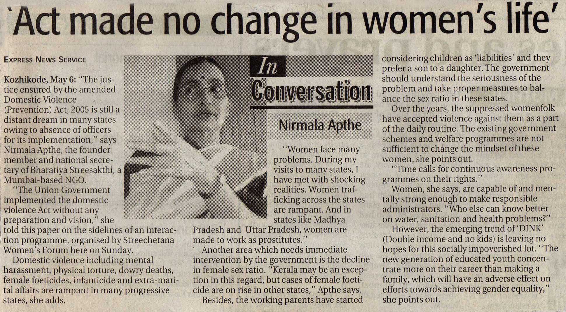 സ്ത്രീകള് നേതൃത്വം വഹിക്കണം: നിര്മല ആപ്തെ