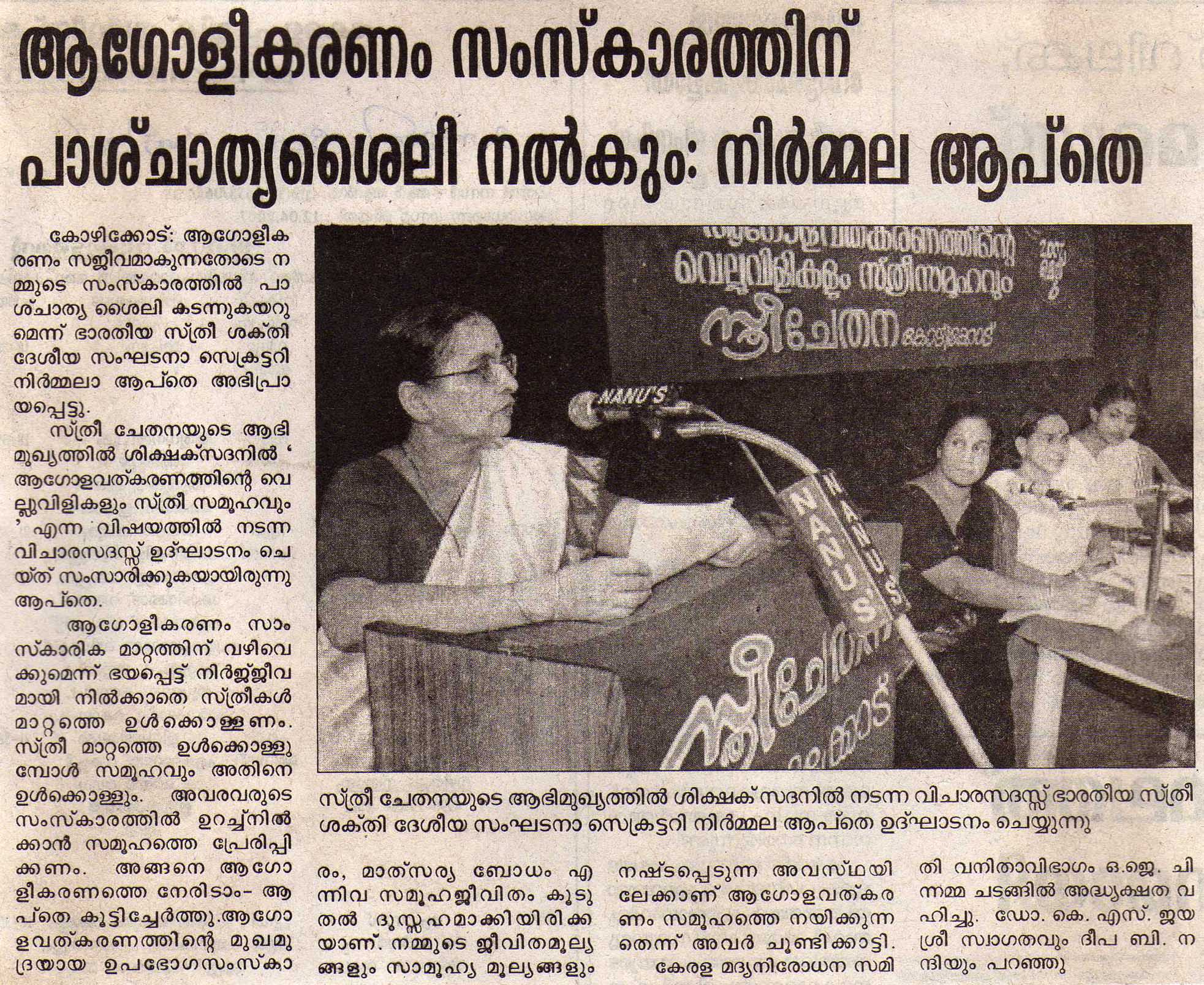 ആഗോളീകരണം സംസ്കാരത്തിന് പാശ്ചാത്യശൈലി നല്കും: നിര്മ്മല ആപ്തെ