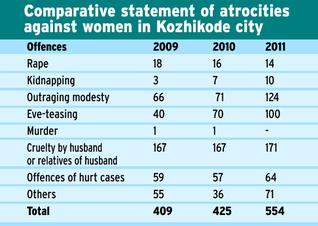 How safe is Kozhikode city for women? Figures provided by the Police Department tell a sorry tale, proving that crimes against women in different forms have been rising in the last few years.