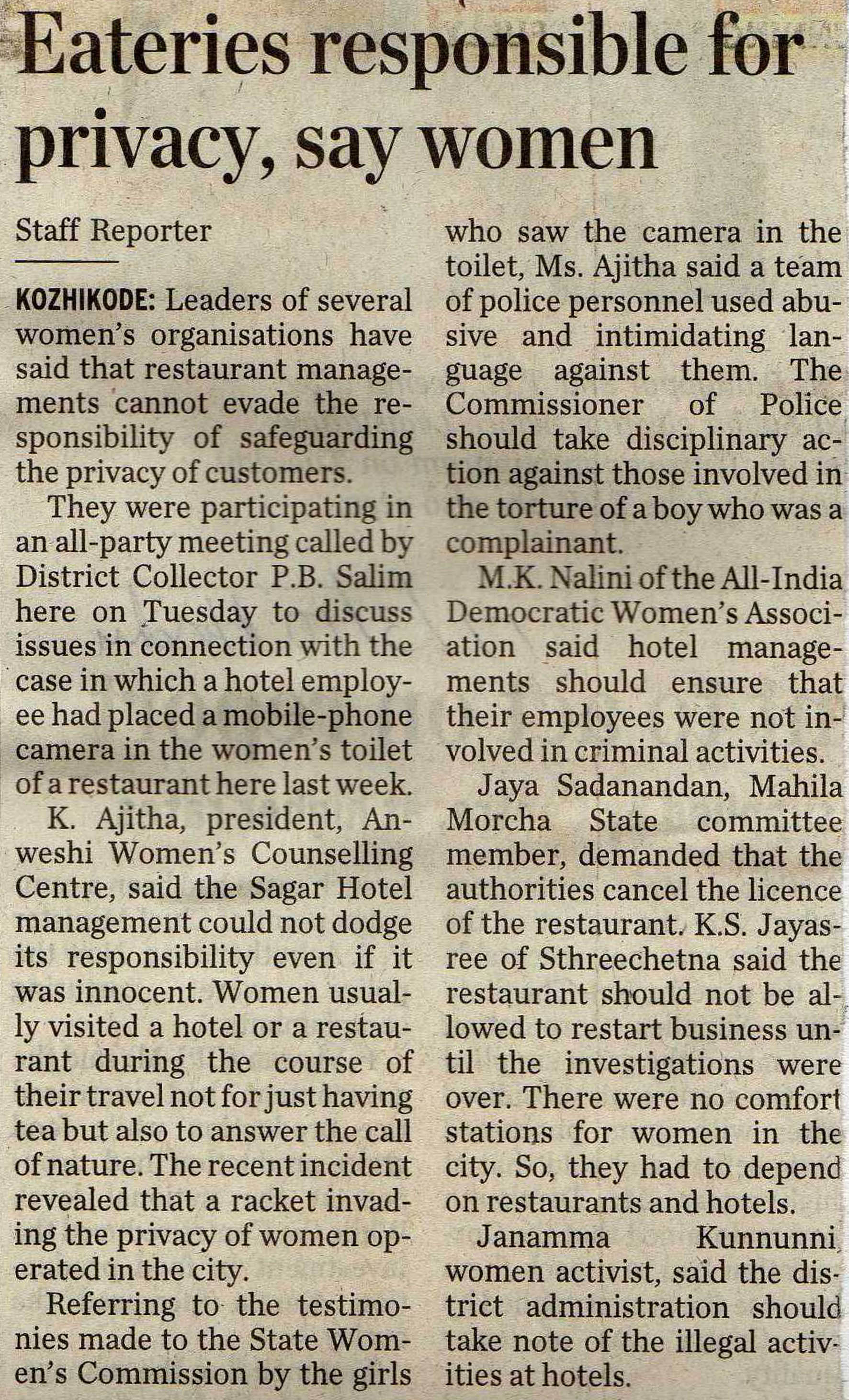 Eateries responsible for privacy, say women