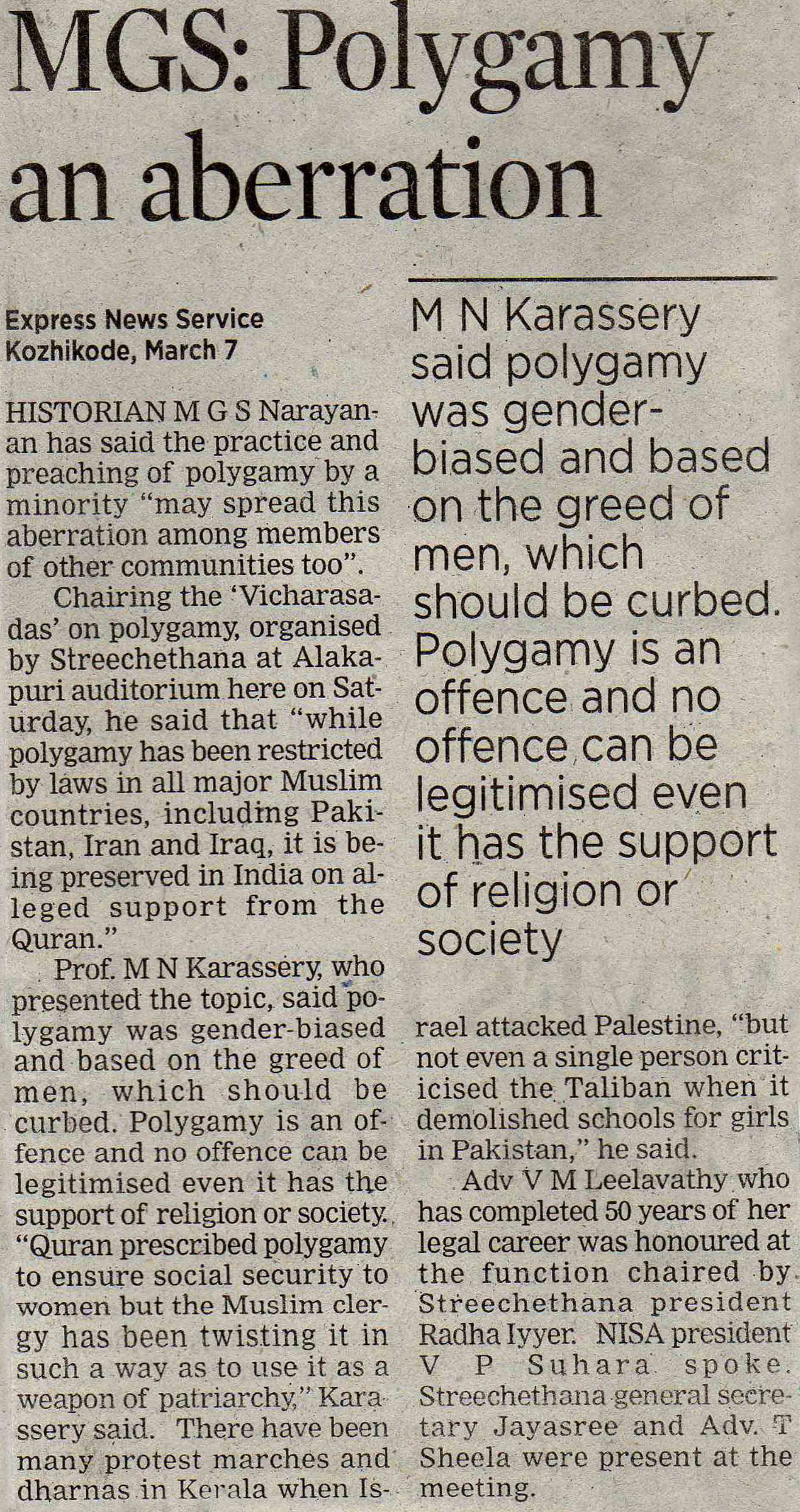 ബഹുഭാര്യത്വം അനുകൂലിക്കുന്ന സ്ത്രീകള് സ്ത്രീവിരുദ്ധര്: എം.എന്. കാരശ്ശേരി