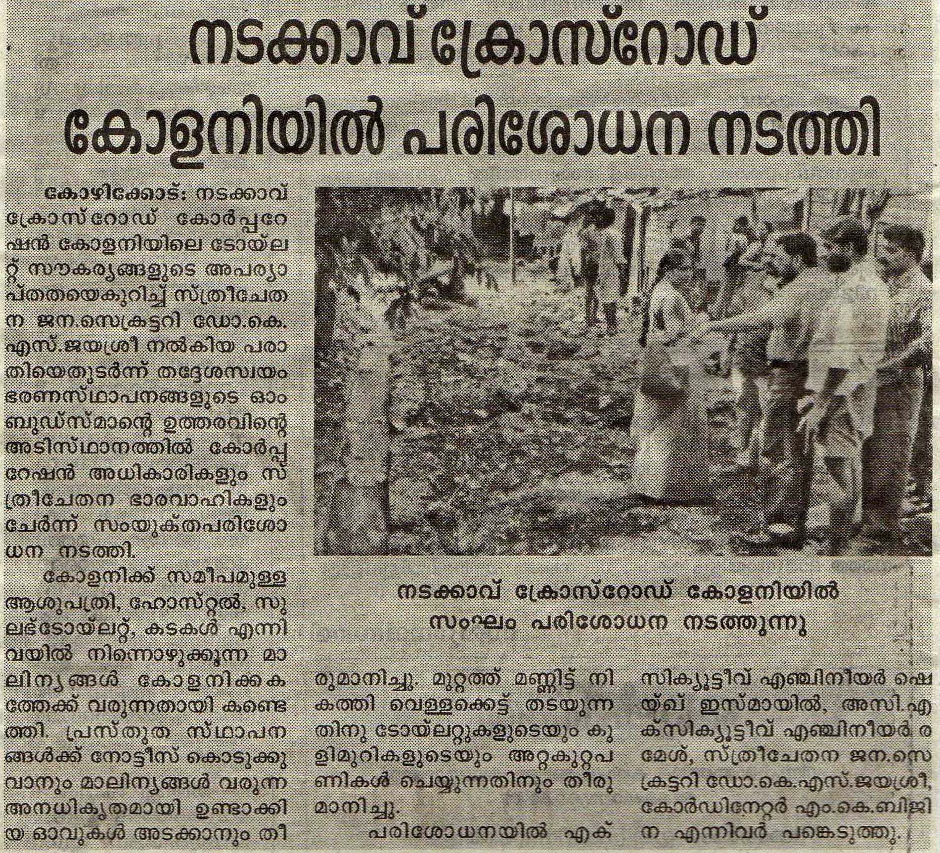 നടക്കാവ് ക്രോസ്റോഡ് കോളനിയില് പരിശോധന നടത്തി