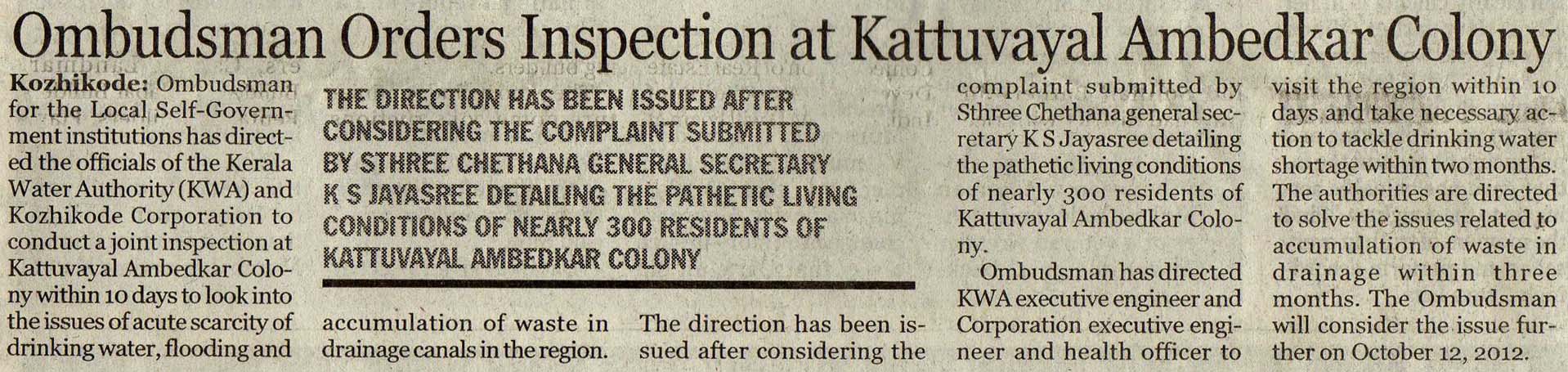 Ombudsman Orders Inspecting at Kattuvayal Ambedkar Colony