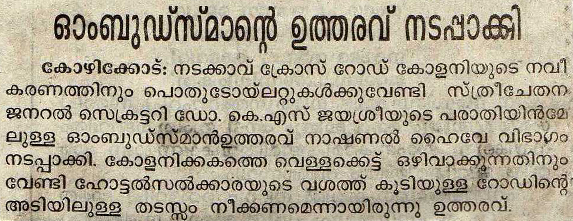 ഓംബുഡ്സ്മാന്റെ ഉത്തരവ് നടപ്പാക്കി