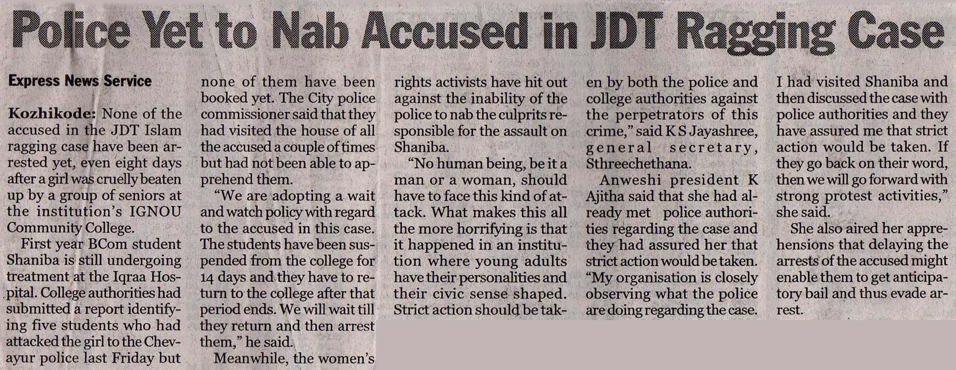 Police Yet to Nab Accused in JDT Ragging Case