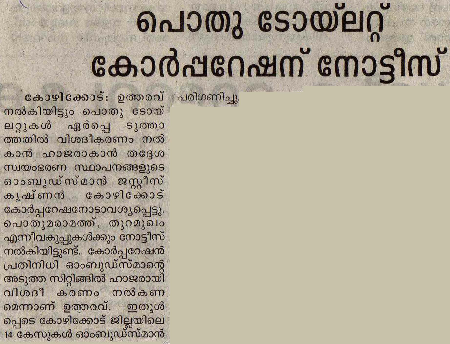 പൊതു ടോയ്ലറ്റ് കോര്പ്പറഷന് നോട്ടീസ്