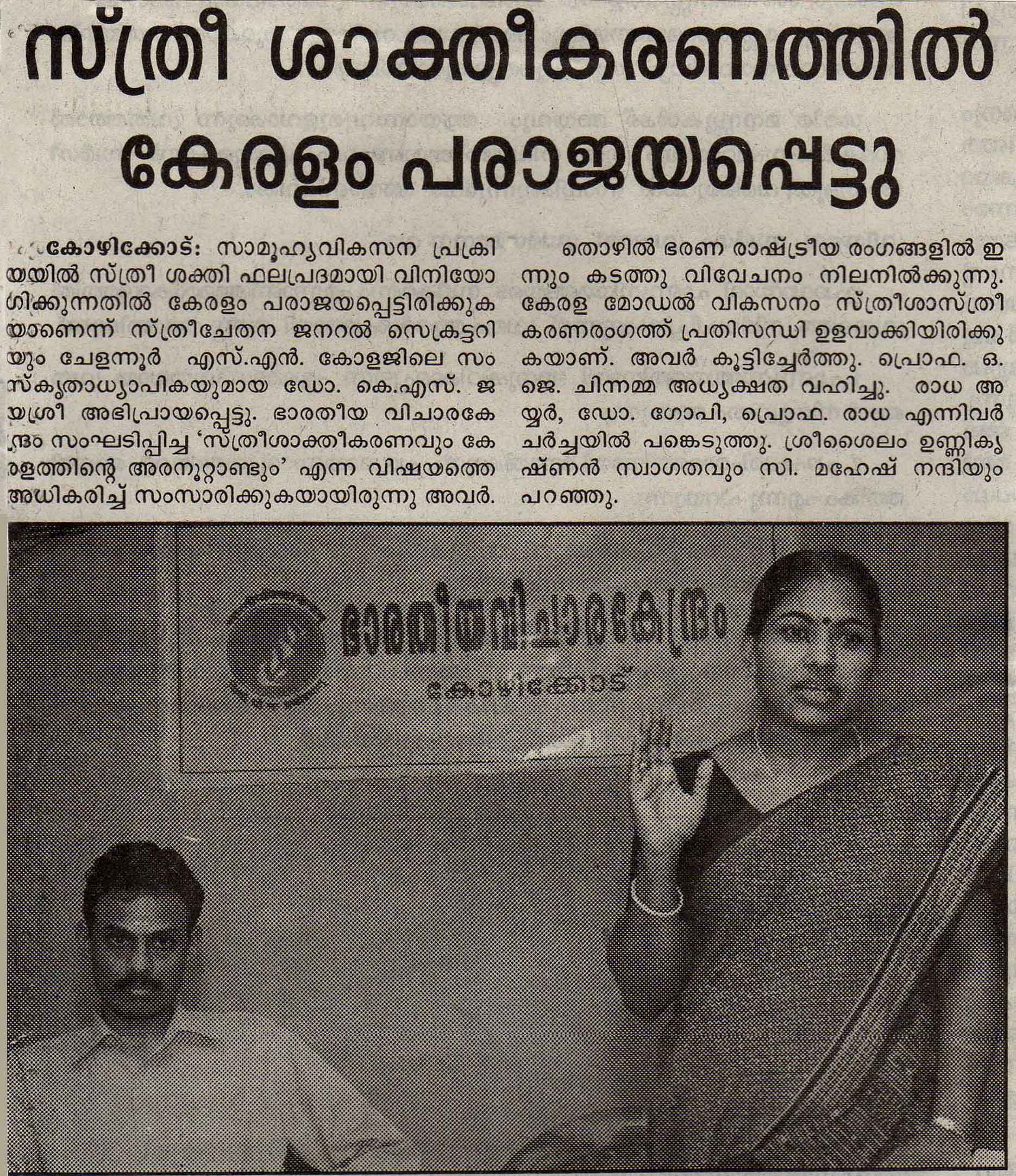 സ്ത്രീ ശാക്തീകരണത്തില് കേരളം പരാജയപ്പട്ടു