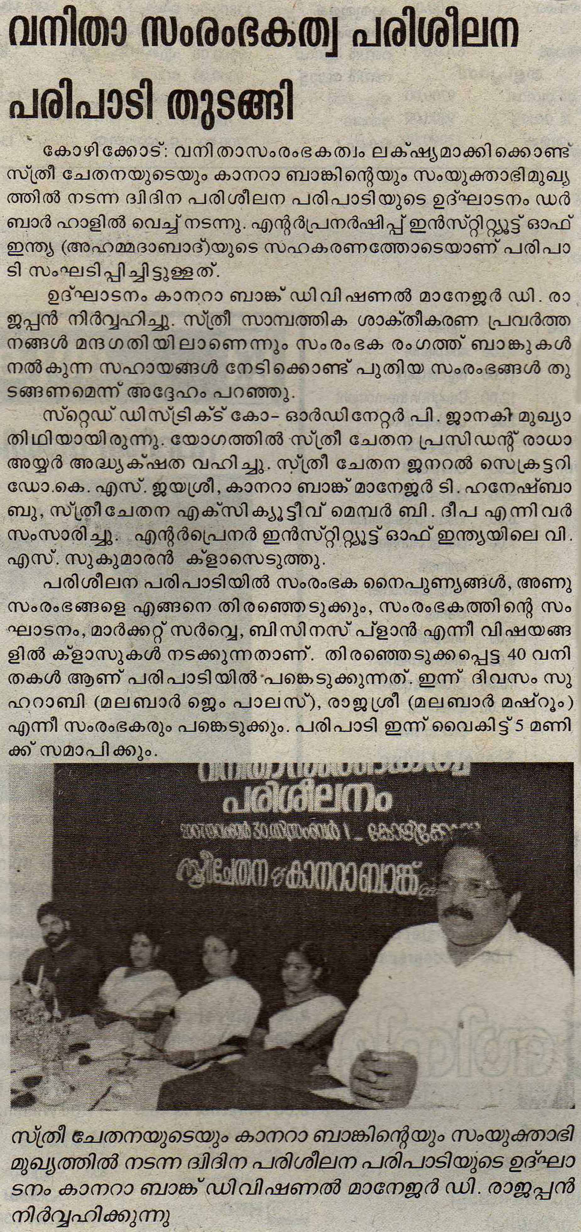 വനിത സംരഭകത്വ പരിശീലന പരിപാടി