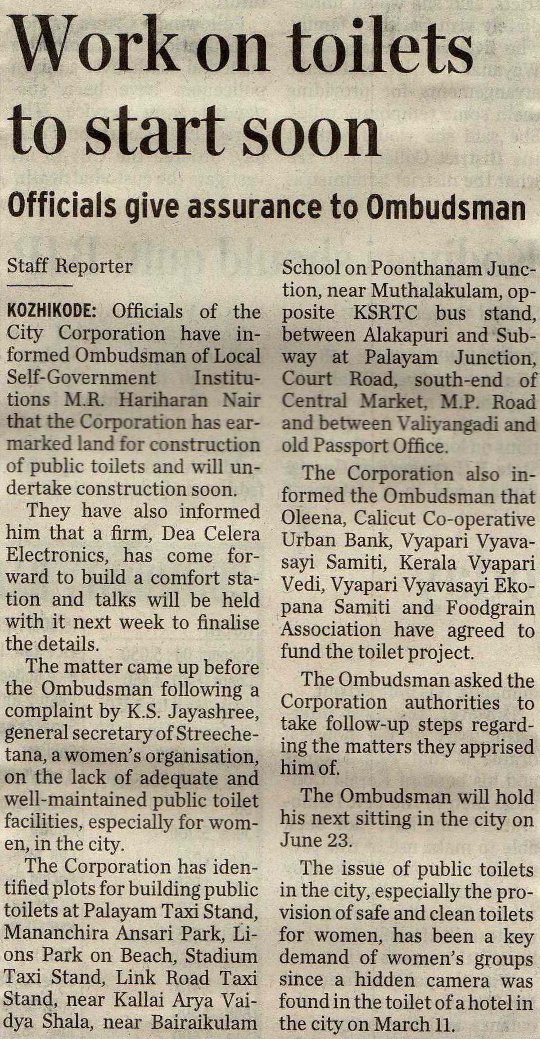 നഗരത്തില് പതിനാലിടത്ത് ടോയ്ലറ്റുകള് സ്ഥാപിക്കും